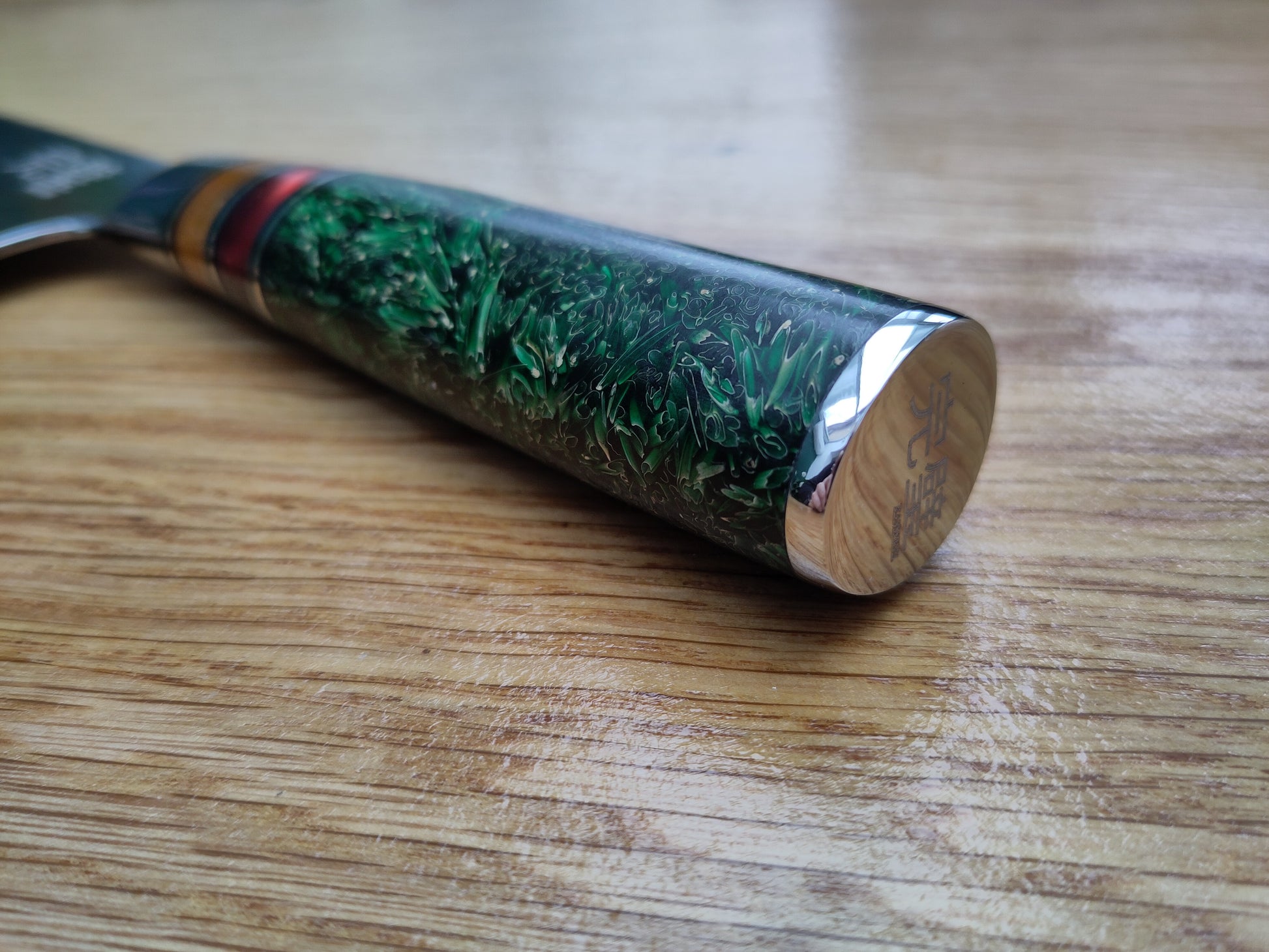 - Uniek handvat: Groene graankorrels in epoxy β elk mes is uniek